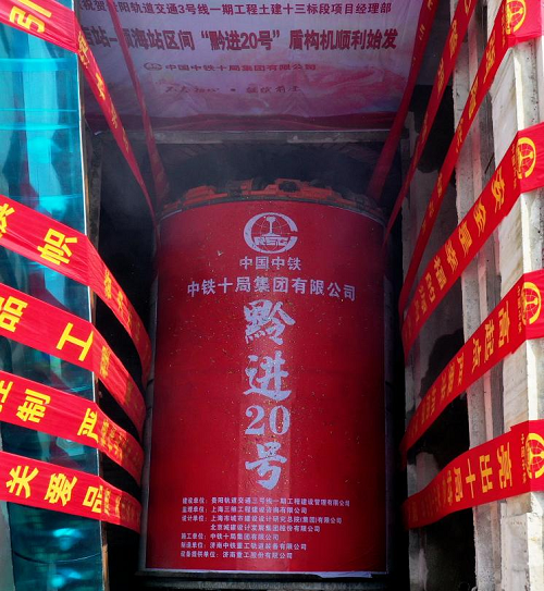7月24日,随着“黔进20号”盾构机刀盘缓缓向前,贵阳轨道交通3号线土建13标茶店站~顺海站区间右线盾构机顺利始发。