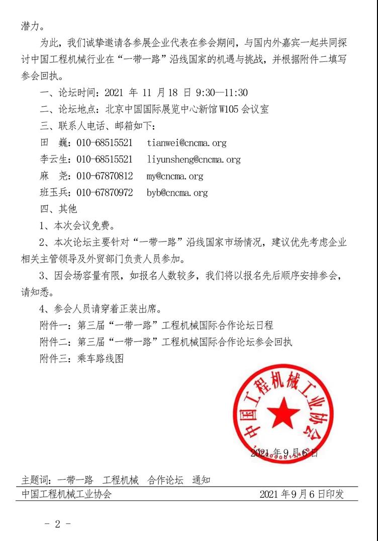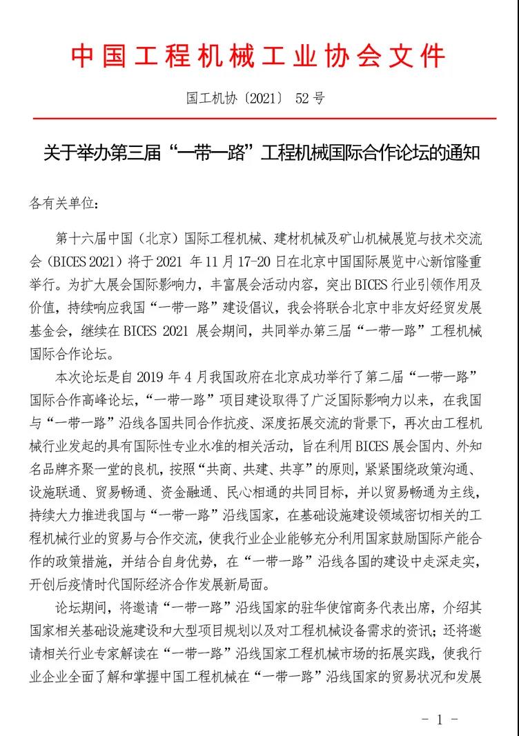 关于举办第三届“一带一路”工程机械国际合作论坛的通知