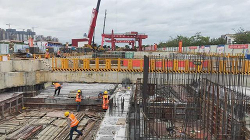 在龟山站,记者看到,工人们正在清理顶板,进行盾构掘进中管片吊装,和地面配套施工准备等作业,各项工作有条不紊地进行着。