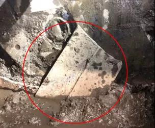 2)通过竖井和盾构机的土舱进行断裂钢板的清理。清理过程中发现,竖井中没有过多的障碍物(钢材)残留,主要集中在土舱和刀盘前。最终,清除了地下约90%的残留障碍物。(预估约有10%的剩余障碍物(钢材)残留在盾构机掘进路线外)。