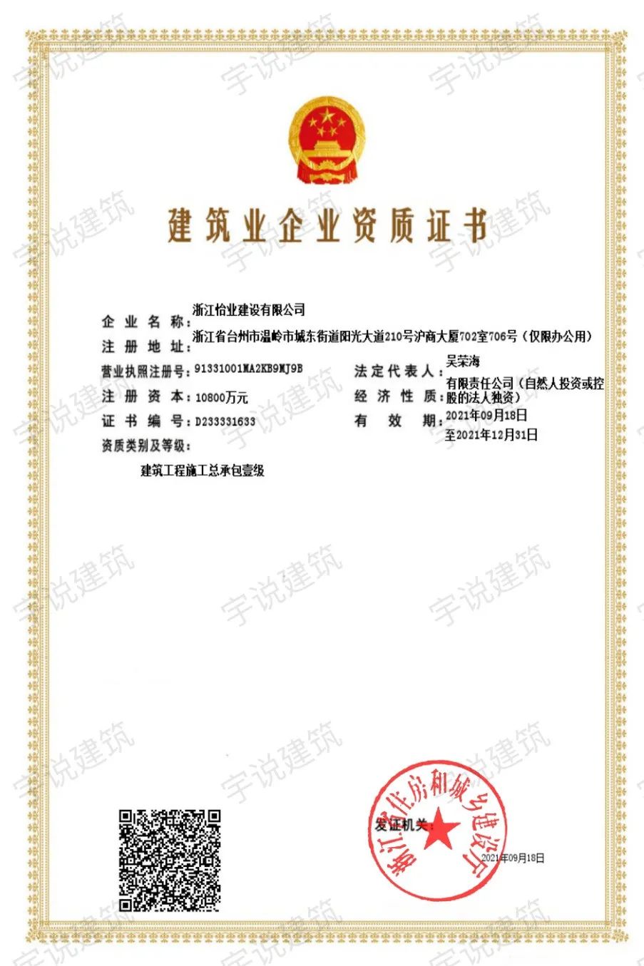 从介绍来看,浙江怡业建设有限公司于2021年9月18日获批建筑工程施工总承包壹级资质;该资质有效期至2021年12月31日。近期出现不能清偿到期债务且明显缺乏清偿能力。