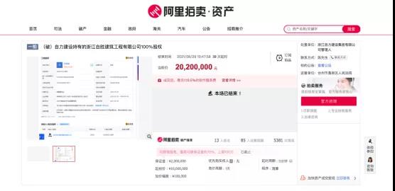▲2021年9月30日,浙江怡业建设有限公司(建筑工程一级资质)发布破产拍卖公告,并于10月21日在网络平台上公开拍卖。