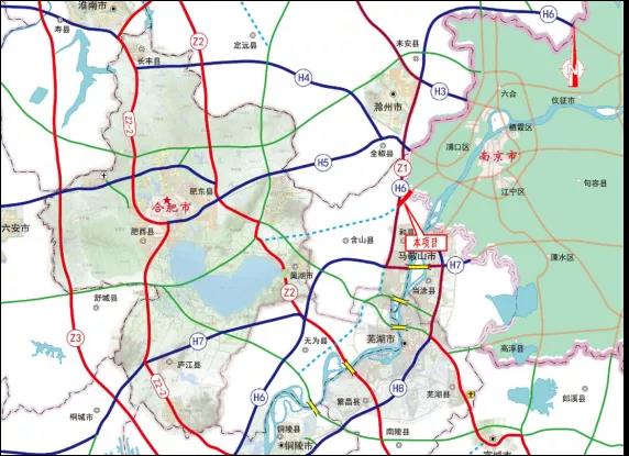 项目起自和县乌江镇和邵村附近皖苏省界,接规划南京至和县高速公路江苏段,往西南延伸,经乌江镇小唐村、香泉镇大罗村,止于香泉镇小尹庄附近,接已建天天高速滁马段。项目全长约14公里,工程投资约25.88亿元。