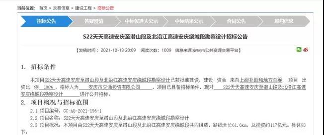 项目最新动态:2021年10月13日发布了勘察设计招标,意味着离施工招标就不远了。