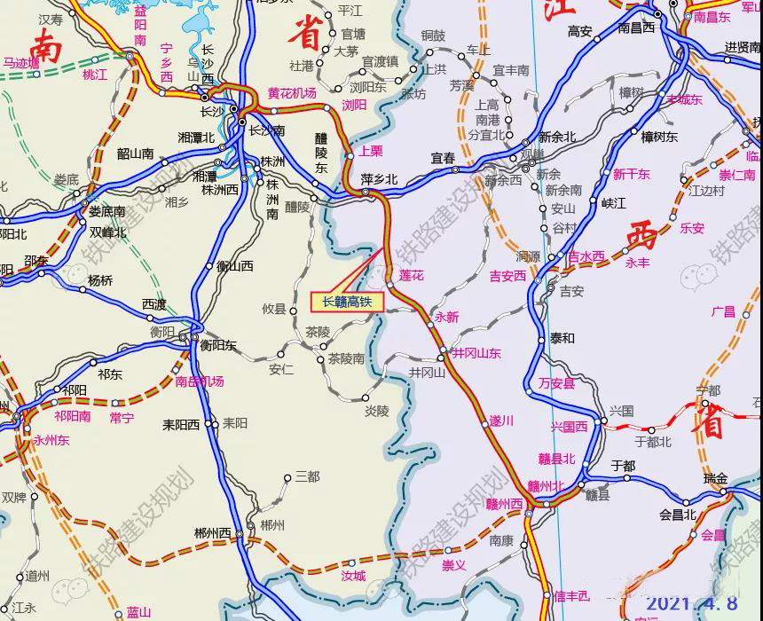 项目线路自湖南长沙西站引出,途经黄花机场、浏阳市,终至江西赣州市,设计时速350公里,项目湖南段长约115公里,总投资预计204亿元。江西省境内线路长297.4公里,途经萍乡市、井冈山市、赣州市、设上栗、萍乡北、莲花、永新、井冈山东、遂川、赣州北等8站,赣州地区设联络线引入赣州西站。