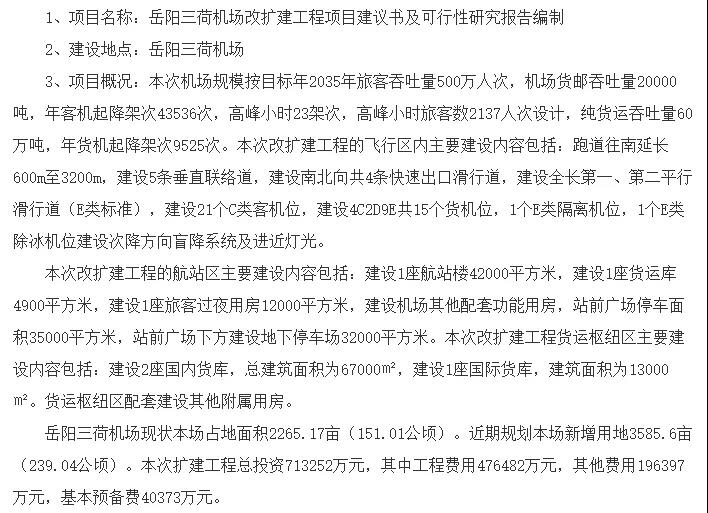 2021年10月14日,召开了岳阳机场改扩建工程项目可研评审会。机场改扩建正处于可研批复阶段,批复完成后,还要完成初步设计及概算批复、施工图设计与审查、清单编制与审查等事项,项目财评完后,才能施工招投标。