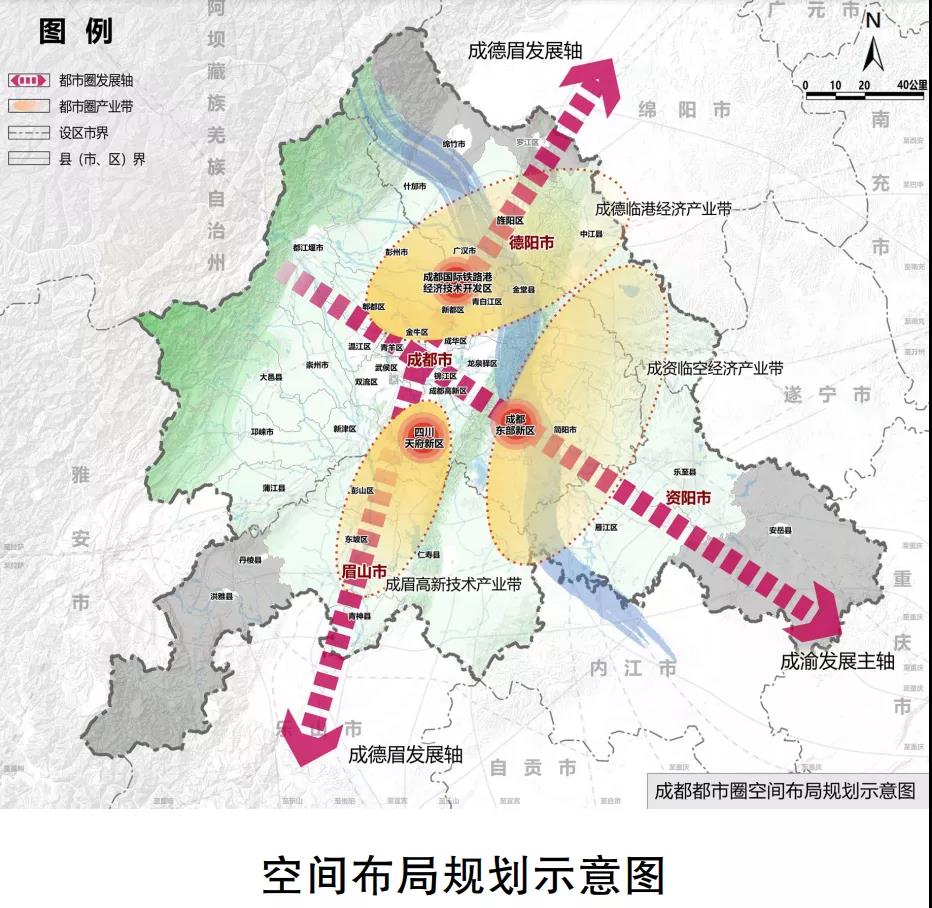 《规划》明确,成都都市圈以成都市为中心,与联系紧密的德阳市、眉山市、资阳市共同组成。