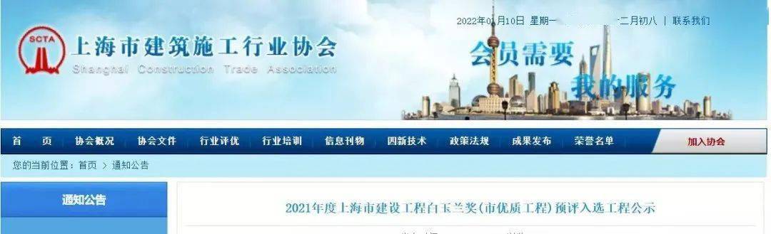 近日,上海市建筑施工行业协会公示2021年度上海市建设工程白玉兰奖(市优质工程)预评入选工程,公示期限为2022年1月6日至1月16日。