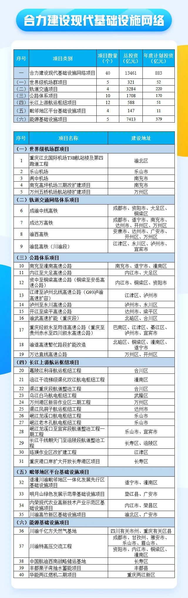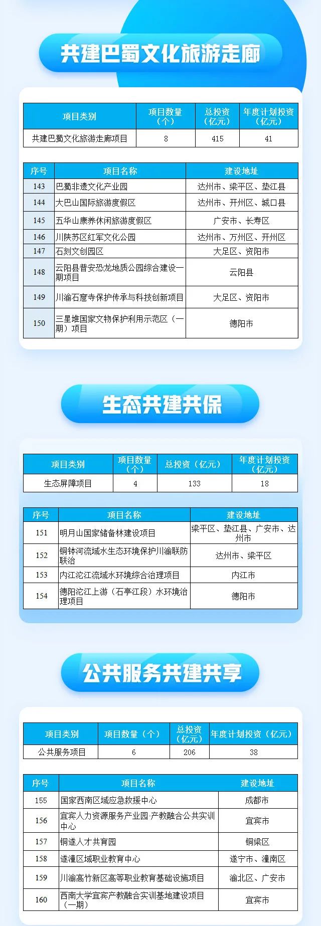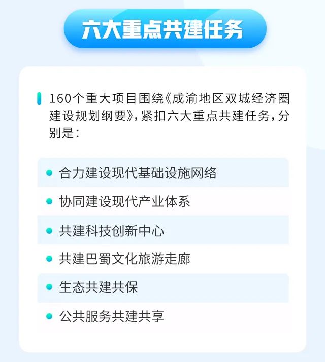 2月7日,推动成渝地区双城经济圈建设联合办公室正式印发《共建成渝地区双城经济圈2022年重大项目名单》,共纳入标志性重大项目160个、总投资超2万亿元,2022年计划投资1835亿元。