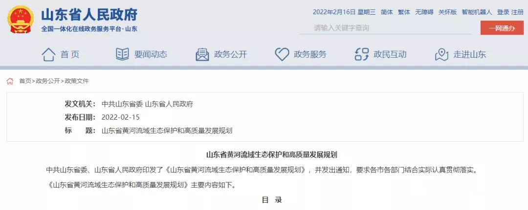 近日,中共山东省委、山东省人民政府印发了《山东省黄河流域生态保护和高质量发展规划》,并发出通知,要求各市各部门结合实际认真贯彻落实。