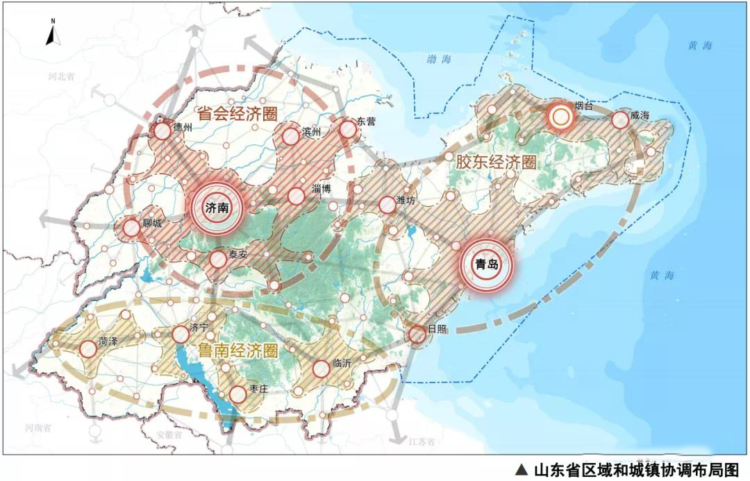 加快三大经济圈融合一体发展。省会经济圈以济南为中心,重点加快推动济泰同城化、济淄同城化、济德同城化,打造全国数字经济高地、世界级产业基地、国际医养中心和国际文化旅游目的地。胶东经济圈以青岛为中心,重点加快推动青潍日、烟威一体化进程,协同建设具有世界先进水平的海洋科教人才中心,打造具有全球影响力的海洋创新中心、对外开放枢纽和黄河流域开放门户。鲁南经济圈协同联动,重点发展高效生态农业、商贸物流、新能源新材料等产业,打造乡村振兴先行区、转型发展新高地、淮河流域经济隆起带。支持枣庄创建国家可持续发展议程创新示范区。牢固树立“一盘棋”理念,推进三大经济圈之间、各城市之间统一规划、分工协作、特色发展。发挥省会经济圈在黄河流域新旧动能转换先行先试优势,突出胶东经济圈黄河流域重要开放门户和陆海交通走廊功能,放大鲁南经济圈在转型发展等方面作用,建立协同推进机制。试点省级新区建设,打造三大经济圈融合发展战略支点。