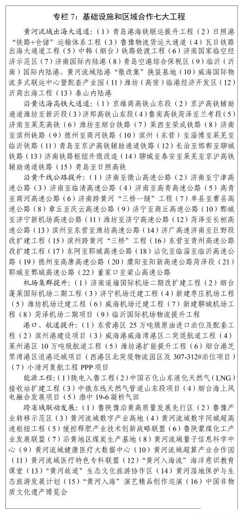 建设综合交通网络。加快建设集高速铁路、高速公路、港口航运、航空运输、城际铁路、城市轨道交通于一体的沿黄达海现代交通运输体系。