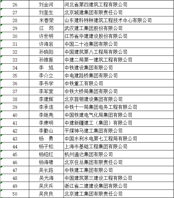 2021年度“茅以升科学技术奖-建造师奖”入选名单(按姓氏笔画排序)