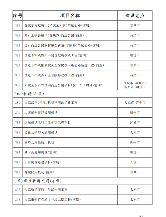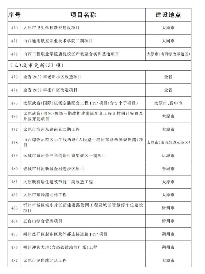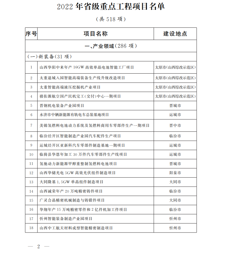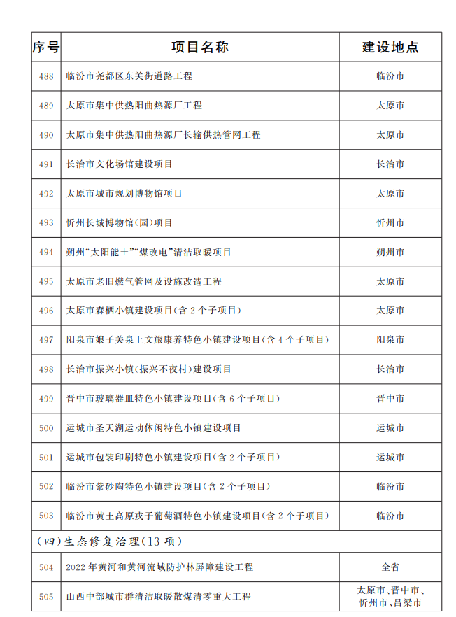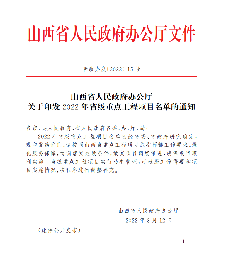 山西省政府办公厅印发文件,2022年省级重点工程项目名单确定,共四大领域518项。