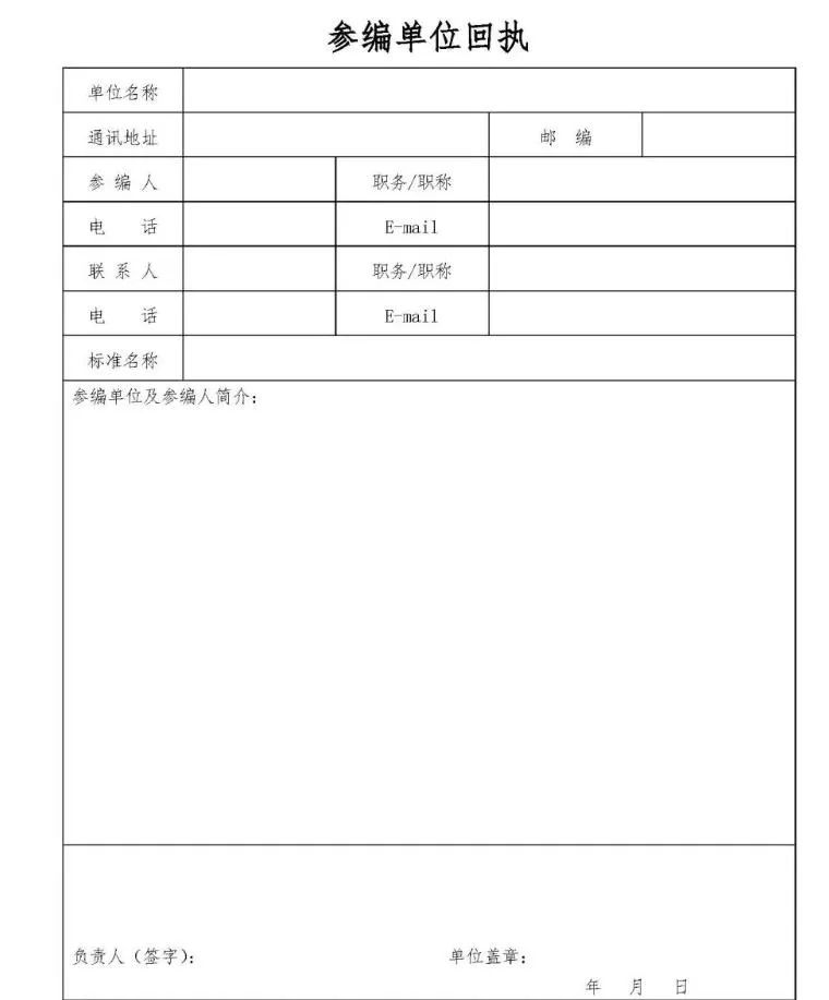 自愿参加标准编制的单位,请指派专人参加编制工作,并填写申请表,采用电子邮件方式进行回复。