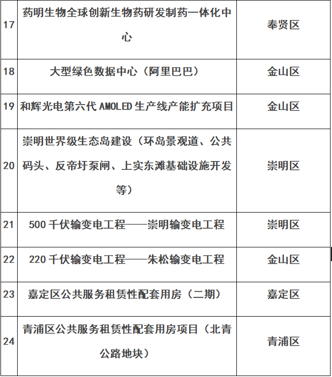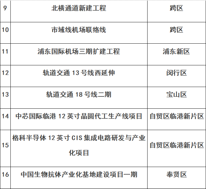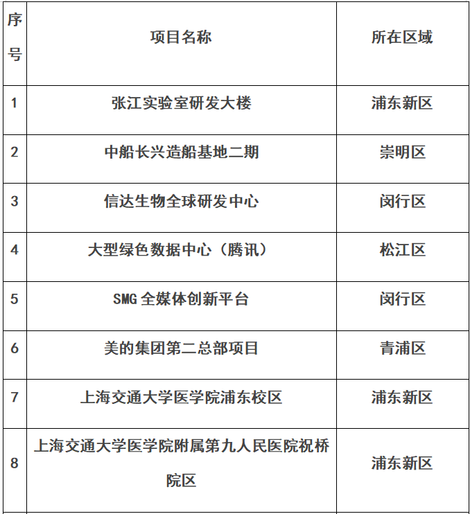 上海市重大工程建筑工地复工复产“白名单”