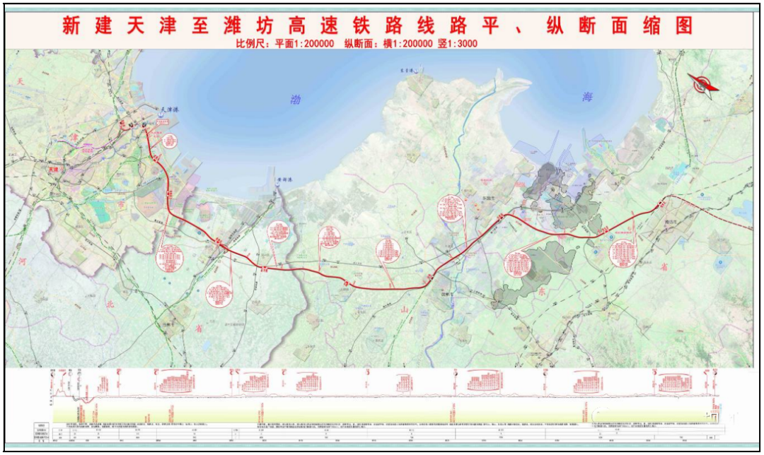 2021年6月,中国铁路设计集团有限公司完成了《新建天津至潍坊高速铁路初步设计》;2022年5月,完成《新建天津至潍坊高速铁路初步设计鉴修》。