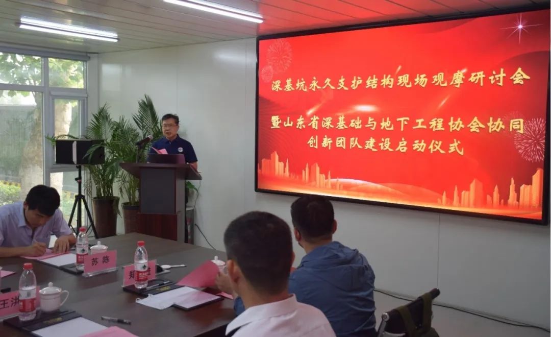 6月30日下午,山东大学基坑与深基础工程技术研究中心在山东省肿瘤防治研究院公共停车场项目部组织召开了“深基坑永久支护结构体系与成套技术”现场观摩研讨会,山东省肿瘤防治研究院副院长蒋建民致辞,山东大学基坑与深基础工程技术研究中心主任、山东省深基础与地下工程协会会长、山东土木建筑学会基坑工程专业委员会主任委员李连祥教授主持会议,并就该项技术研发过程和实践应用做了主题报告。来自省内外勘察、设计、施工、装备和高校科研等专业、30余名专家出席了会议。