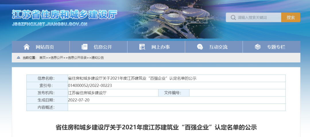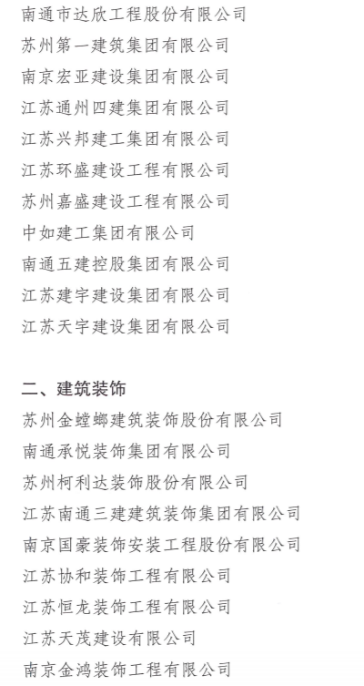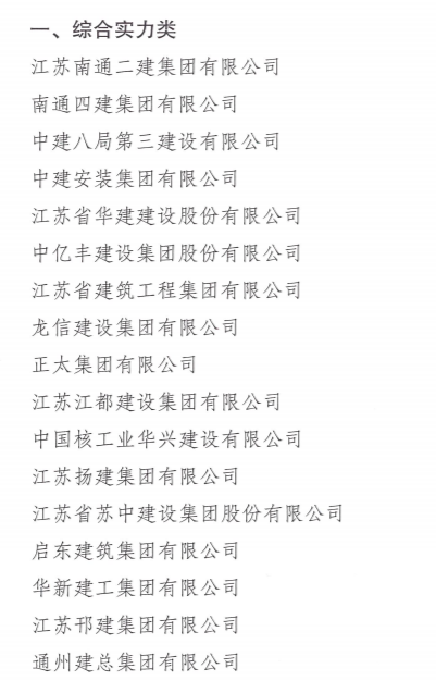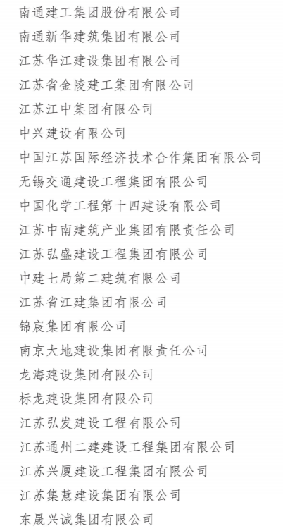 近日,江苏省住建厅发布关于2021年度江苏建筑业“百强企业”认定名单的公示: