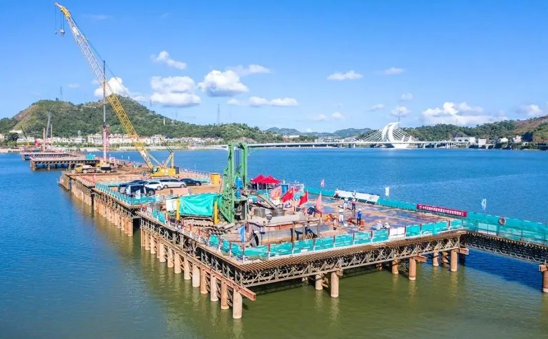 漩门湾特大桥设计桩基465根,平均桩长34.5米,最长桩长103.5米,桥梁大直径超长桩基、深水基础、跨路跨河连续梁施工技术含量高,安全风险高,施工难度大。