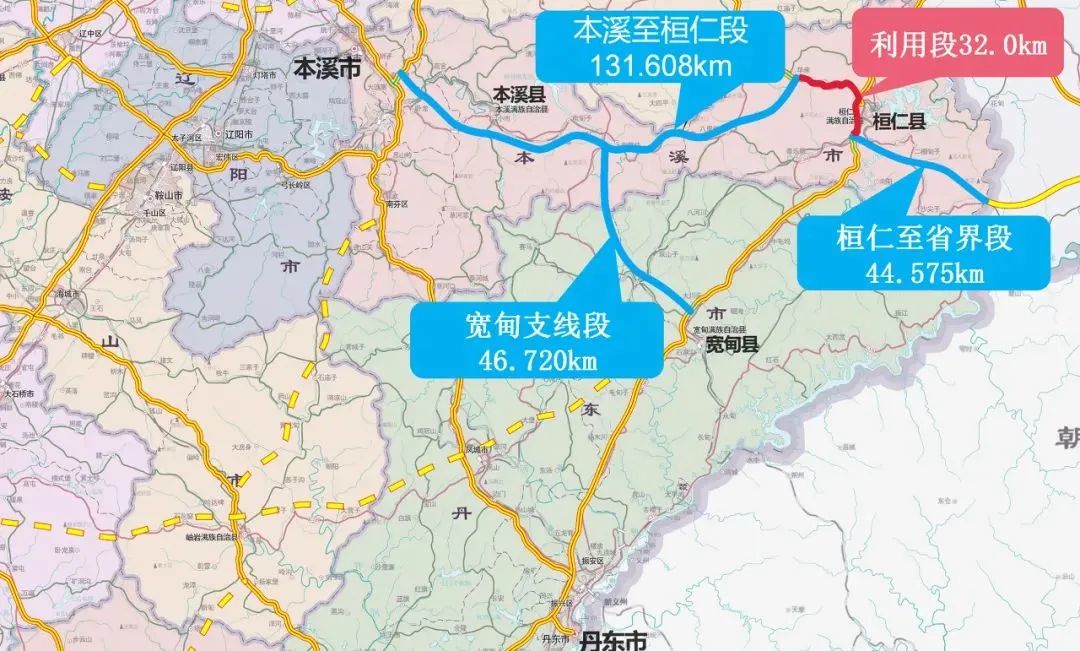 项目概况:线路总长254.862公里,包括本桓主线和宽甸支线,主线自西向东展布,起于本溪市明山区威宁营村西南(接丹阜高速K163+260处),途经雅河工业园区、董船营村、荒沟村、鸡冠砬子村到二棚甸子镇北侧,线路东南方向途经影壁山村、三架窝棚村、桦树甸子村,最终在省界挂牌岭以挂牌岭隧道与吉林境内段对接。其中,本桓主线路线全长208.11公里,包括新建176.105公里、完全利用32公里;宽甸支线路线全长46.752公里,采用双向四车道,设计速度100公里/小时。