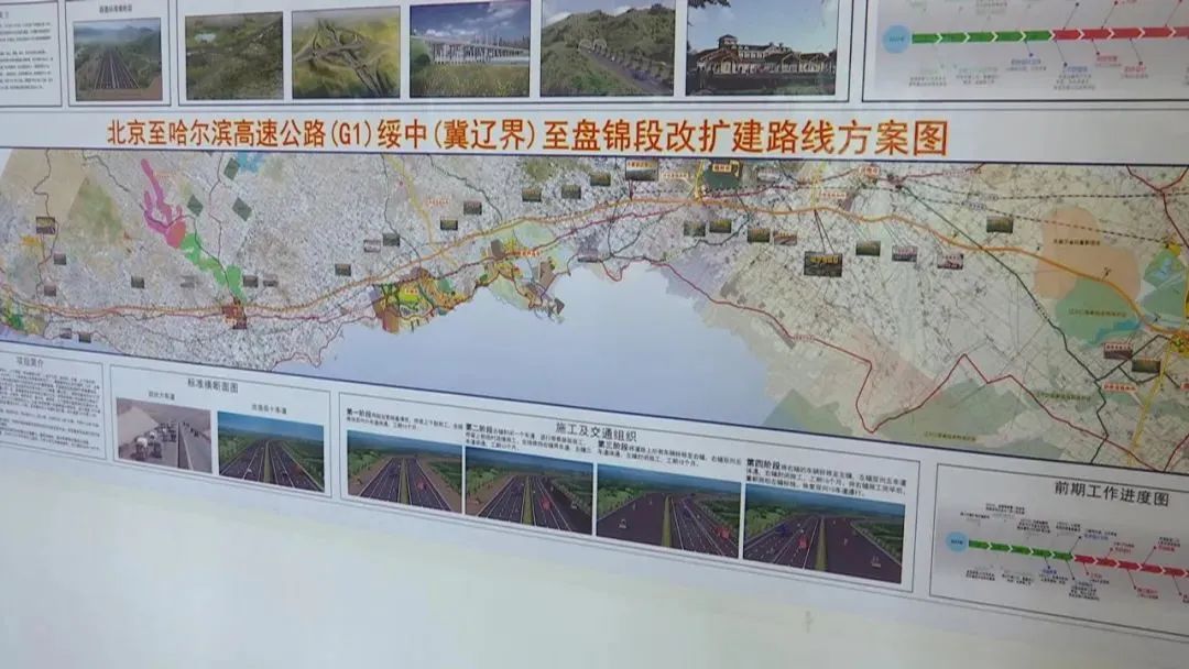 项目概况:起于葫芦岛市绥中县九门口隧道(冀辽界),新建复线至前所枢纽立交,经绥中县、兴城市、葫芦岛市、锦州市、凌海市,止于盘锦市盘锦枢纽立交,路线全长238.03公里,其中九门口复线段长15.95公里采用双向六车道,主线改扩建段长222.08公里采用六车道改扩建至十车道。项目主线路基宽度55米,设计时速120公里/小时,总投资309亿元,建设周期为4年,预计2026年10月建成通车。