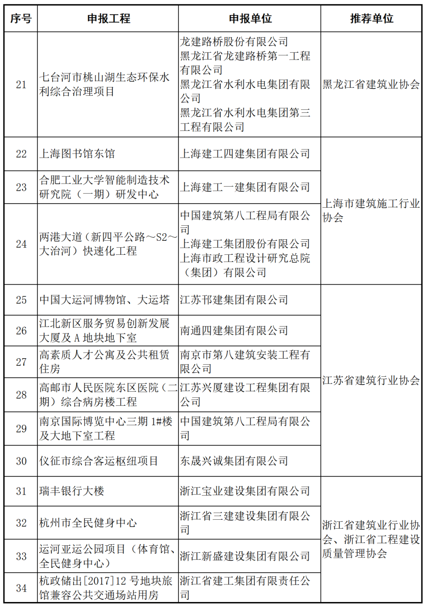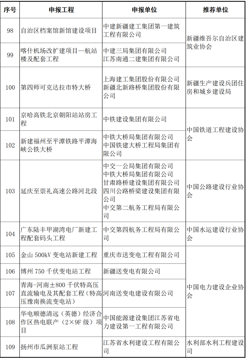 (二)请各推荐单位积极配合工程复查,协调申报单位按照上述文件要求做好复查准备工作。