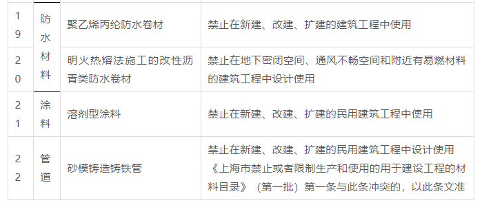 三、2018年版目录首次列入的建筑材料及设备,自2019年6月1日起停止在本市民用建筑工程中设计,自2019年10月1日起禁止在本市民用建筑中使用。在本目录发布前已经完成设计,但在本通知规定生效后用于民用建筑工程的,由建设单位负责组织设计单位、施工单位协商修改设计。