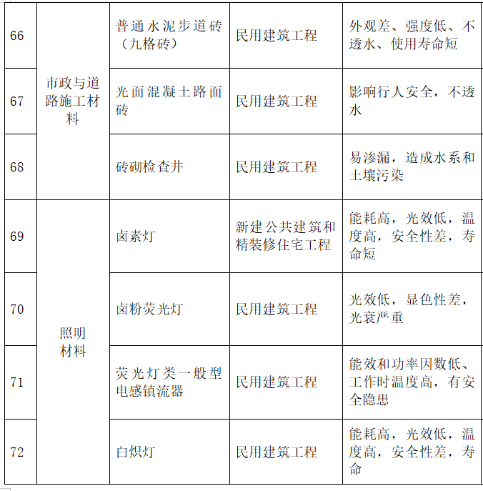 三、在工程建设项目使用或超范围使用《技术通告》所列落后技术、工艺和产品的,按相关法规予以处罚。《技术通告》未列入的技术、工艺和产品,国家和我市法律法规、政策、标准规定禁止或限制使用的,按相关法律法规、政策、标准规定执行。