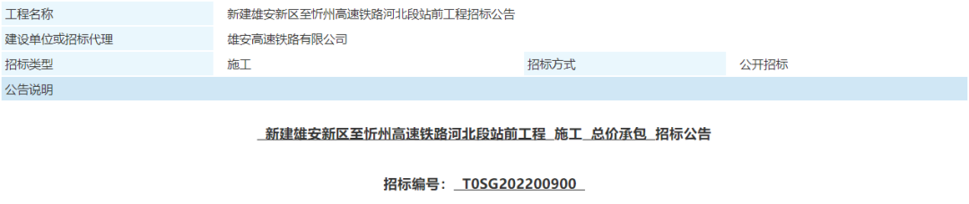 注:本次招标不含雄安站至保定南站(含)段,其中雄安新区地下段土建工程先期开工段已于今年初开工。