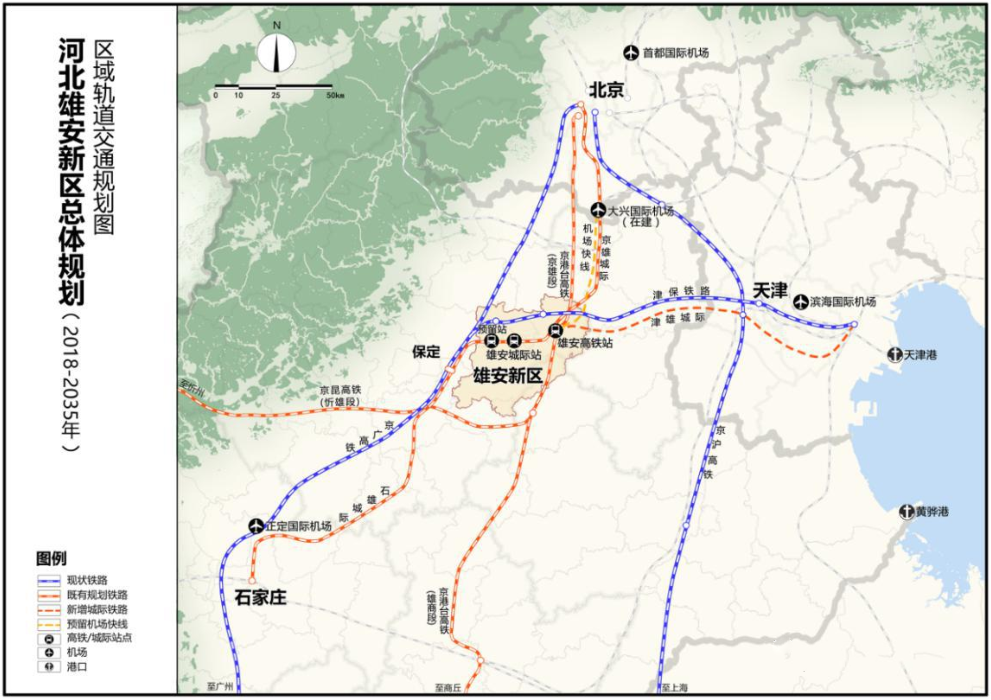 2018年4月,中共中央、国务院做出关于对《河北雄安新区规划纲要》的批复,雄忻高铁被列为雄安新区“四纵两横”区域高速铁路交通网络的重要横向通道之一。
