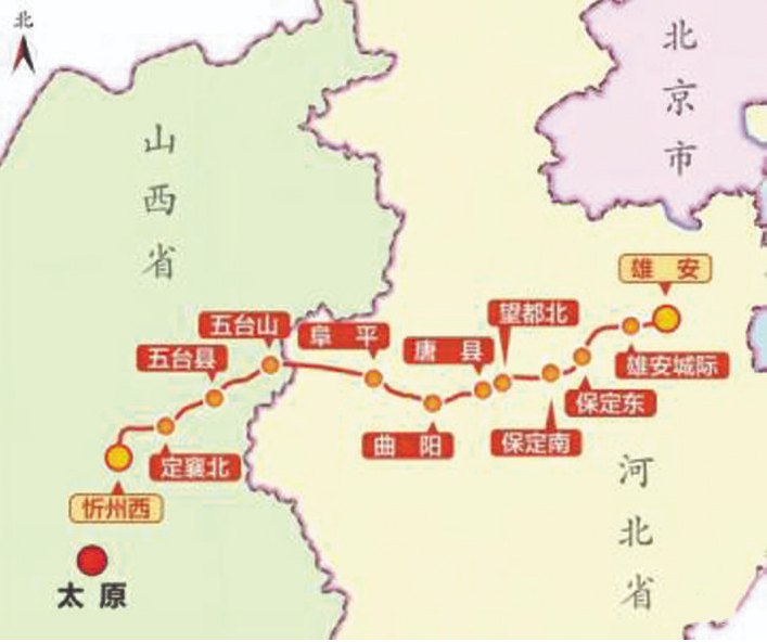 建设规模:新建雄安新区至忻州高速铁路起自京雄铁路雄安站,经河北省雄安新区、保定清苑区及望都、曲阳、阜平等县,山西省五台山风景区,忻州市五台县、定襄县,接入忻州西站,正线全长342公里,全线设12个车站(含一个预留车站),雄安新区地下利用拟建的东西轴线隧道工程进行布设,同步建设相关存车场、存车线。
