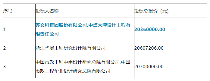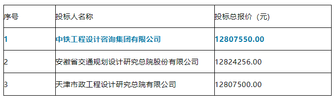 3、安徽省交通规划设计研究总院股份有限公司,投标总报价(元):19234378.00
