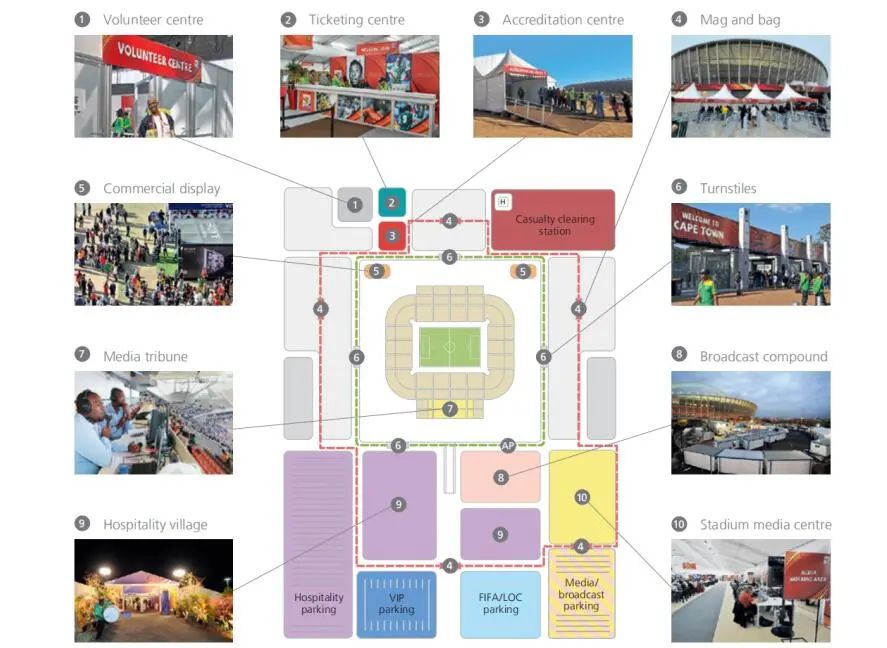 到安保空间设施、球场内草皮设计与施工