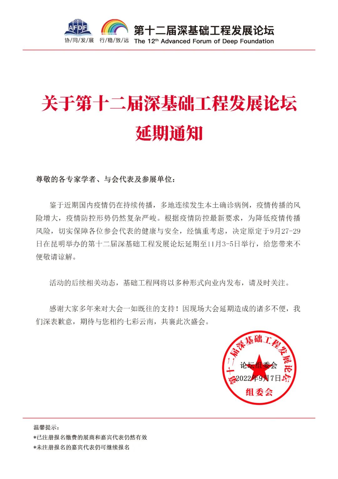 *已注册报名缴费的展商和嘉宾代表仍然有效