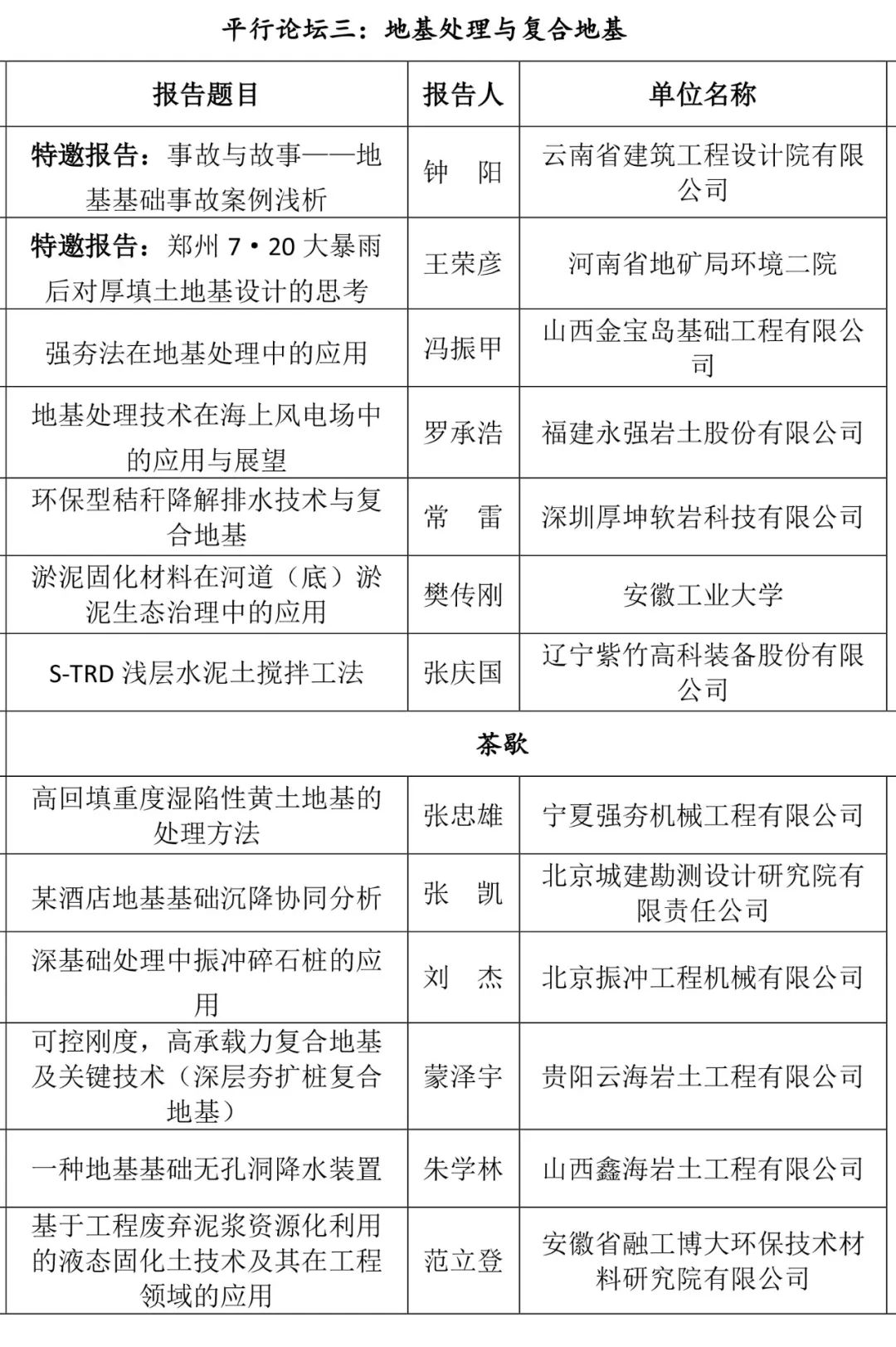 平行论坛特邀及专题报告