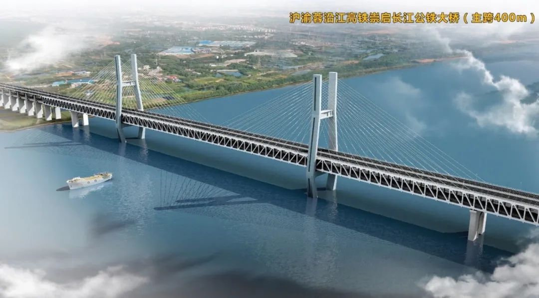其中主通航孔桥为主跨400米双塔双索面钢桁结合梁斜拉桥,为世界最大跨度公铁两用无砟轨道斜拉桥。