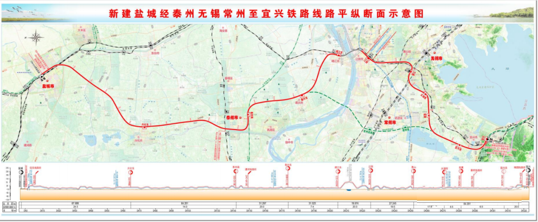 “线路北承青盐、徐宿淮盐铁路,中联北沿江高铁、南沿江铁路、沪宁城际,南接宁杭高铁,形成纵贯鲁东南、苏北、苏中、苏南及浙江地区的快速客运通道。”