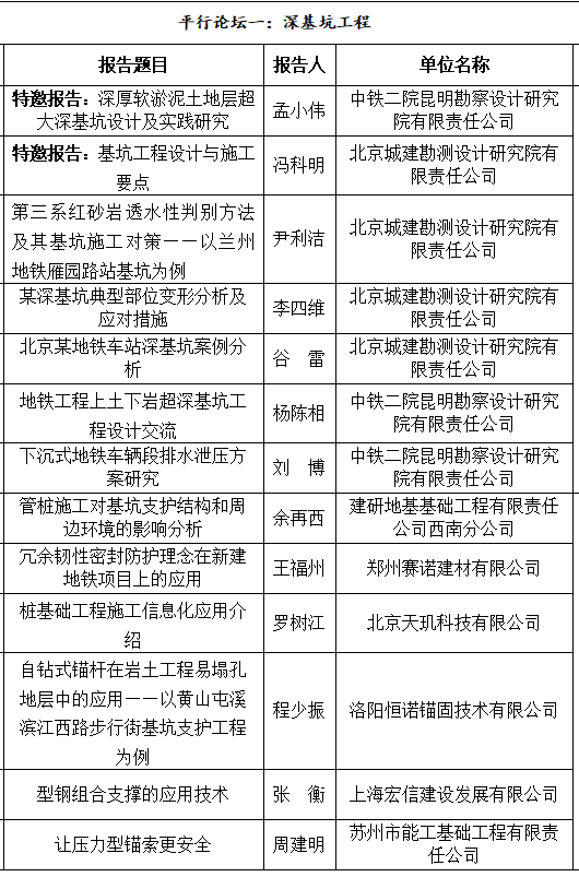 第十二届论坛,拟定于11月10-12日在云南昆明举办,将围绕“协同发展 行稳致远”的主题,延传“会议+展览+交易”的方式,旨在交流深基础工程理论、技术、装备与工程实践发展成果,研讨热点难点问题,探讨发展趋势,推动深基础工程勘察、设计、施工、产业装备技术协同发展。本届论坛邀请了深基础工程领域的院士、专家学者作行业发展报告、大会报告、平行论坛专题报告及相关配套活动,其中:行业发展报告5个、大会报告15个、平行论坛特邀报告6个+专题报告33个及10余场配套活动。