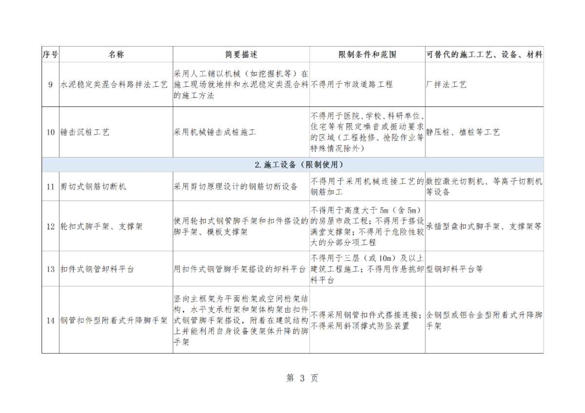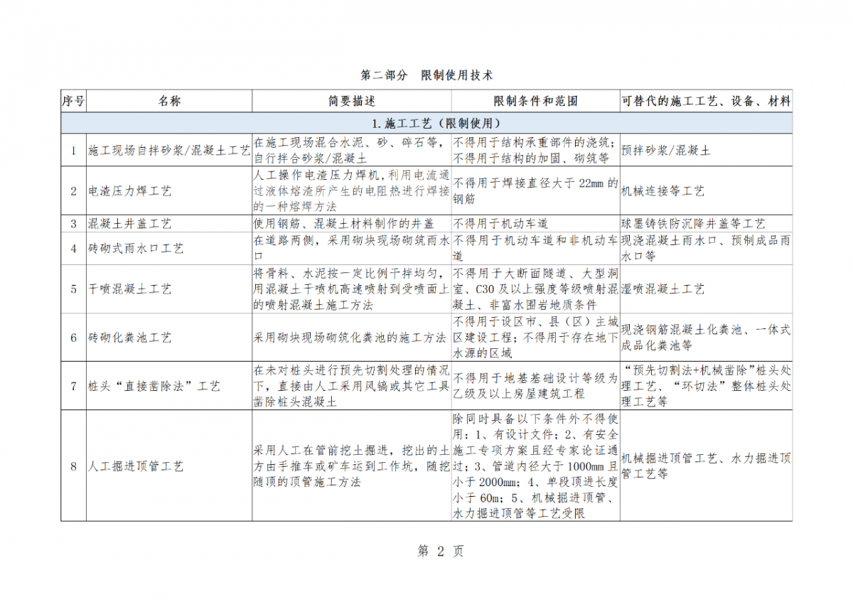 房屋市政工程禁止和限制使用技术目录(2022年版)