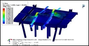 枢纽屋盖采用空间桁架钢结构体系受力复杂,加工和安装精度要求高,建造施工挑战性大。基于大跨度钢结构顶棚设计和施工方案,团队对结构体系及其它影响结构性能的关键参数进行优化,并对施工过程中的防护装备、起重设备、运输设备及其支承结构的安全性进行分析,提升项目从设计到施工全过程的技术先进性、经济性和安全性。