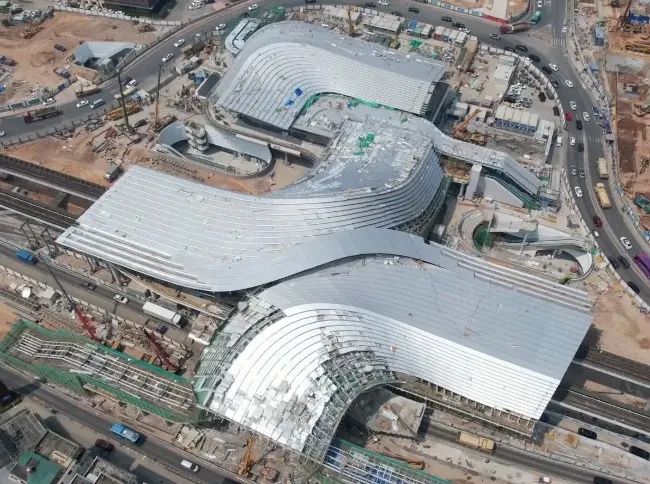 大运枢纽是深圳东部唯一汇集地铁、城际铁路、公交于一体的大型综合交通枢纽,未来将实现3、14、16号线和深大城际的四线换乘。大运枢纽占地面积约6万㎡,规划建筑面积约17.32万㎡。顶棚采用以“湾区之舞”为主题造型,整体飘逸灵动,极具美感。