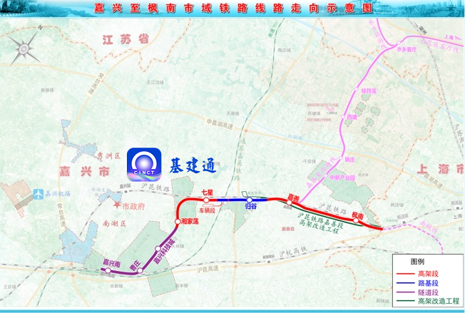 工程概况:项目起于嘉兴南站,途经嘉兴经济技术开发区、南湖区、嘉善县,止于嘉善县惠民街道浙沪省界,线路全长 35.1 公里。沿线设嘉兴南站、曹庄站、嘉兴科技城站、湘家荡南站、七星站、归谷站、嘉善站和枫南站共 8 个车站。本线与嘉善至西塘线在嘉善站按贯通运营条件建设。新建七星车辆段 1 座、嘉兴南站控制中心 1 座,与嘉善至西塘线共享。采用最高运行速度为 160 公里/小时、交流供电的市域 C 型车。