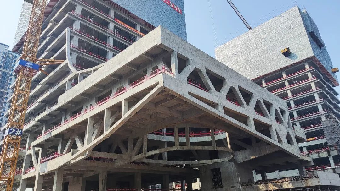 近日,建筑公司承建的广州律师大厦外挑26.9m、重达750t的裙楼悬挑安装完成,标志着广州律师大厦二期项目全面进入主体钢结构快速施工阶段。就工程施工高度高、截面复杂、重量大等问题,项目团队先后组织多次专家论证、现场模拟演练等,最终选择“先拼装,再提升”的方案,采用超大型液压同步提升技术,大大降低了安装施工难度和安全风险。目前12个工作面同时开展施工,多元化法律服务标杆区地标建筑加速成形。