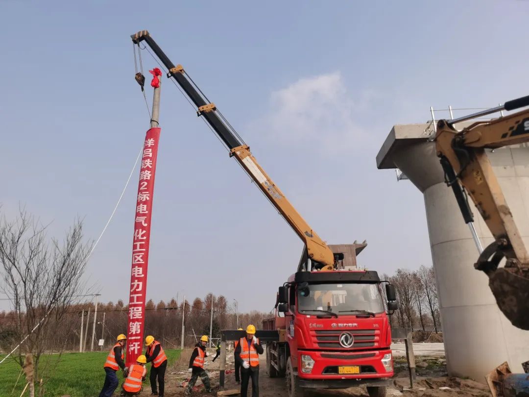 随着起重机吊臂缓缓收起,洋吕铁路2标电力工程第一杆成功组立,标志着电气化公司参建的洋吕铁路2标站后工程全面开工。洋吕铁路是江苏第一条百亿级的地方铁路,北接海洋铁路北渔站,南接宁启铁路二期吕四站,新建线路全长74.4千米。电气化公司负责洋吕铁路北渔至东灶港段等四个车站及相邻区间的通信信息、信号、及电力相关专业施工。