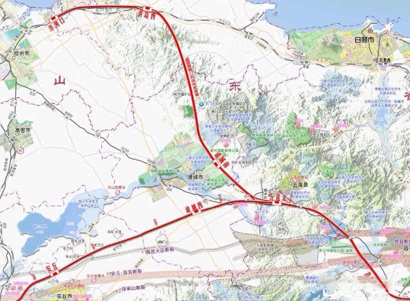 线路长度108.3公里,桥隧比74.5%。其中,青岛市境内53.2公里,潍坊市诸城市境内39.8公里,日照市五莲县境内15.3公里。项目总投资估算235.3亿元,设计速度目标值350km/h。