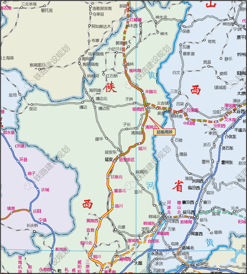 全线共设延安、延安新区、延川、清涧北、绥德西、米脂北、榆林南7座车站。
