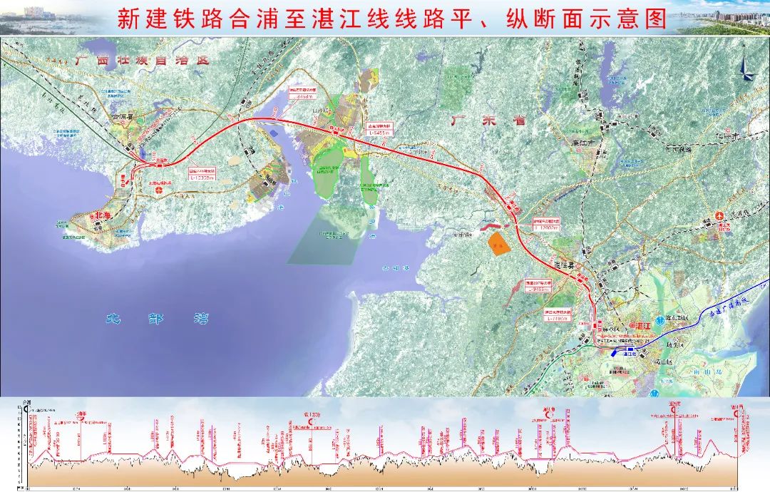 全线共新建3座车站:遂溪南、廉江南、白沙镇,预留北海北站,引入既有湛江西、北海及合浦站。