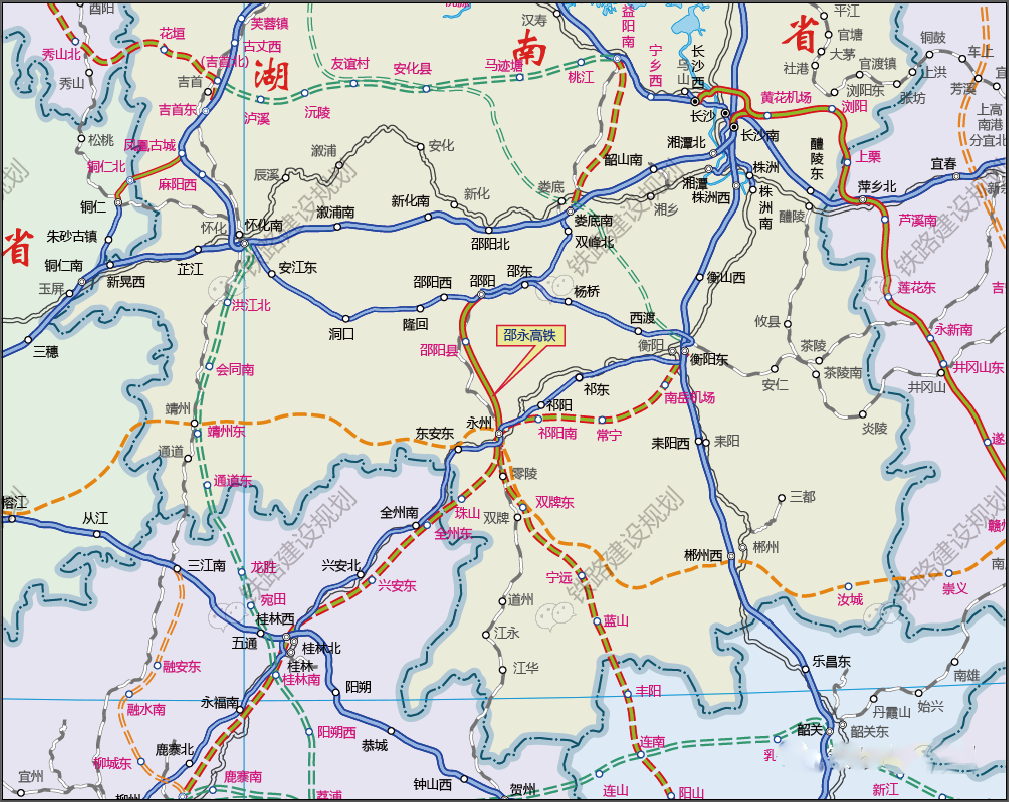 邵永高铁是国家高铁主通道“八纵八横”之呼南通道的重要组成部分,是与永清广高铁形成粤港澳大湾区北上新通道的重要区段。