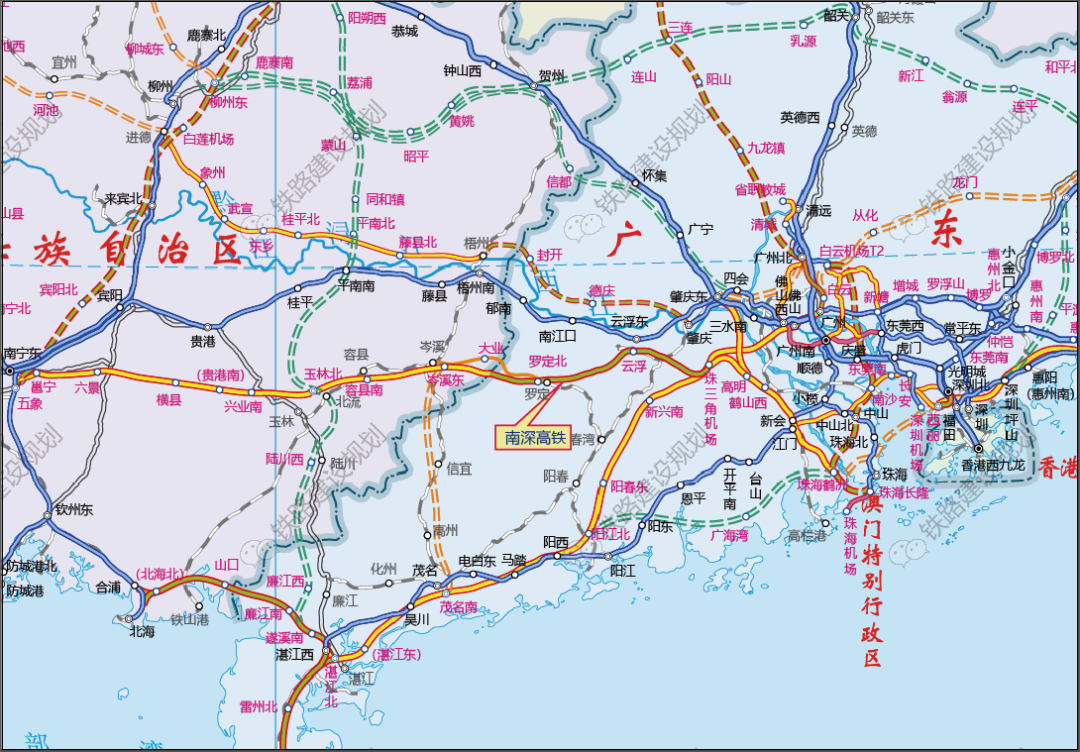 合湛高铁是国家“十二五”铁路规划项目,2015年国家发改委首次批复项目可研(原设计时速200公里)。